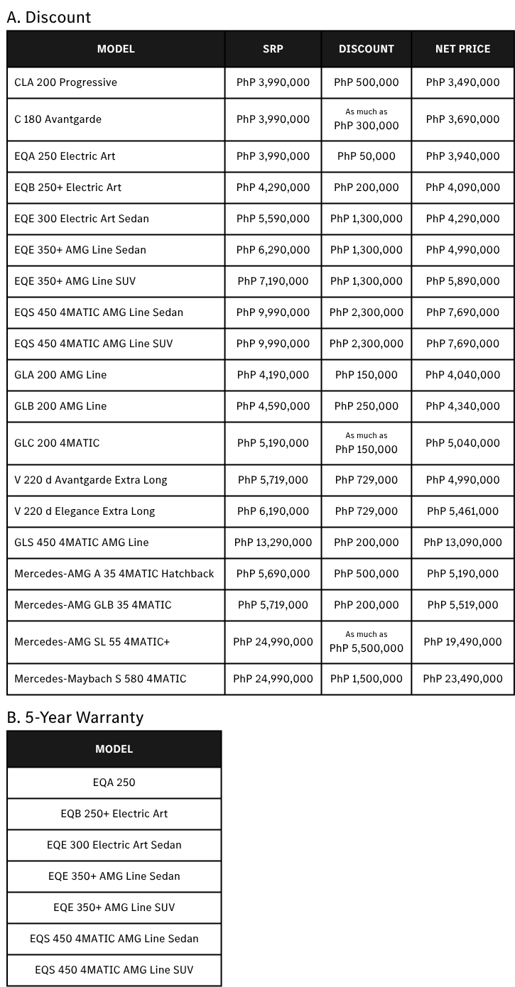 - This promo is open to all customers who will purchase the Mercedes-Benz units included in this promo from any of the following Mercedes-Benz showrooms within this promo period: